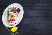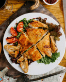 Zdjęcie "Pieczone przepiórki z ziołami na drewnianym tle" może być wykorzystywane do celów osobistych i komercyjnych zgodnie z warunkami zakupionej licencji Royalty-free. Obraz jest dostępny do pobrania w jakości wysokiej rozdzielczości do 5760x3840.