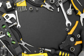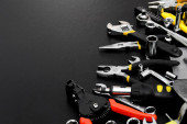 Zdjęcie "Wiele różnych narzędzi do naprawy na czarnym tle z miejscem do kopiowania tekstu. Koncepcja naprawy i budowy." może być wykorzystywane do celów osobistych i komercyjnych zgodnie z warunkami zakupionej licencji Royalty-free. Obraz jest dostępny do pobrania w jakości wysokiej rozdzielczości do 5760x3840.