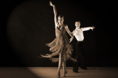 Zdjęcie "Tancerze w sali balowej przeciwko na czarny" może być wykorzystywane do celów osobistych i komercyjnych zgodnie z warunkami zakupionej licencji Royalty-free. Obraz jest dostępny do pobrania w jakości wysokiej rozdzielczości do 5760x3840.