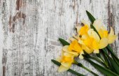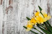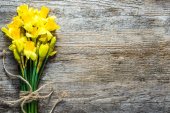 bouqut żółty postu lilyl (żonkil) na drewnianym stołem