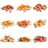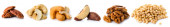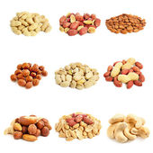 Zestaw orzechów włoskich, orzechów brazylijskich, migdałów, nerkowca, orzeszków sosnowych orzeszków ziemnych, pistacje, kolekcja orzeszków ziemnych izolowane, Zestaw różnych pysznych orzechów organicznych na białym tle