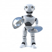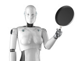 3d renderowania szef kuchni robot gotowania z patelni