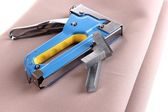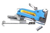 Budowa zszywacz i klamry na białym tle