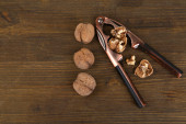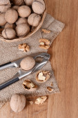 Dziadek do orzechów z orzechów włoskich na drewnianym tle