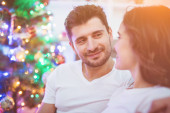 Zdjęcie "Całująca się para siedzi z pudełkiem obok choinki" może być wykorzystywane do celów osobistych i komercyjnych zgodnie z warunkami zakupionej licencji Royalty-free. Obraz jest dostępny do pobrania w jakości wysokiej rozdzielczości do 5760x3840.