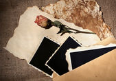 piękne Przebiśniegi i papier fotograficzny pusty na stary tło