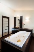 Zdjęcie "luksusowy apartament, sypialnia z jacuzzi" może być wykorzystywane do celów osobistych i komercyjnych zgodnie z warunkami zakupionej licencji Royalty-free. Obraz jest dostępny do pobrania w jakości wysokiej rozdzielczości do 5760x3840.