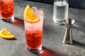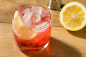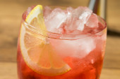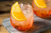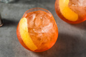Boozy orzeźwiający koktajl Campari Spritz z cytrynową dekoracją