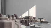 Zdjęcie "Panorama salonu z prostą, szarą kanapą narożną i czarnym stołem do kawy" może być wykorzystywane do celów osobistych i komercyjnych zgodnie z warunkami zakupionej licencji Royalty-free. Obraz jest dostępny do pobrania w jakości wysokiej rozdzielczości do 5760x3840.