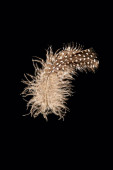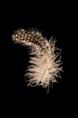 Dwa brązowe pióra ptaków odizolowane na czarnym tle, abstrakcyjne tło