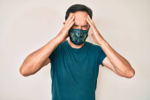 Zdjęcie "Biały człowiek w czarnej masce na czerwonym tle " może być wykorzystywane do celów osobistych i komercyjnych zgodnie z warunkami zakupionej licencji Royalty-free. Obraz jest dostępny do pobrania w jakości wysokiej rozdzielczości do 5760x3840.