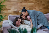 Zdjęcie "Uśmiechnięta kobieta i dziecko witają przyjaciół prezentami przygotowującymi do wspólnego świętowania wakacji stojąc w jasnej nowoczesnej kuchni urządzonej w świątecznym stylu" może być wykorzystywane do celów osobistych i komercyjnych zgodnie z warunkami zakupionej licencji Royalty-free. Obraz jest dostępny do pobrania w jakości wysokiej rozdzielczości do 5760x3840.
