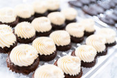 Zdjęcie "Lukier czekoladowy babeczki z kremem malinowym ser maślany." może być wykorzystywane do celów osobistych i komercyjnych zgodnie z warunkami zakupionej licencji Royalty-free. Obraz jest dostępny do pobrania w jakości wysokiej rozdzielczości do 5760x3840.