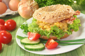 Zdjęcie "bajgiel z jajecznicy na bekonie" może być wykorzystywane do celów osobistych i komercyjnych zgodnie z warunkami zakupionej licencji Royalty-free. Obraz jest dostępny do pobrania w jakości wysokiej rozdzielczości do 5760x3840.