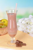 Koktajle mleczne z owocami na stole na światło niebieskie tło