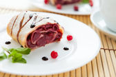 Świeże pieczone pasty z wiśni na tabliczce na stół szczegół
