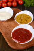 różne sosy na desce do krojenia na stół szczegół
