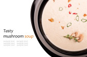 Zupa grzybowa w misce biały, na talerzu, na białym tle