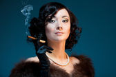 kobieta w ścisłym ubrania w stylu retro 30-th