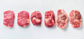 Zdjęcie "Surowy zestaw alternatywnych kawałków wołowiny Chuck przewraca oczami, górne ostrze, gruby stek. Organiczne mięso. Białe, teksturowane tło. Widok z góry z miejscem na tekst" może być wykorzystywane do celów osobistych i komercyjnych zgodnie z warunkami zakupionej licencji Royalty-free. Obraz jest dostępny do pobrania w jakości wysokiej rozdzielczości do 5760x3840.