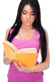 smutna dziewczyna studentów posiadających otwarte książki