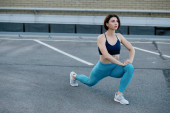 Zdjęcie "Silna młoda kobieta rozciągająca się ze skakaniem. Fitness kobieta sportowiec ćwiczenia na świeżym powietrzu." może być wykorzystywane do celów osobistych i komercyjnych zgodnie z warunkami zakupionej licencji Royalty-free. Obraz jest dostępny do pobrania w jakości wysokiej rozdzielczości do 5760x3840.