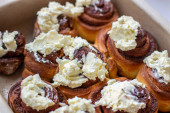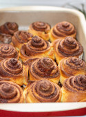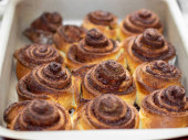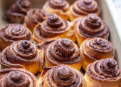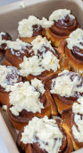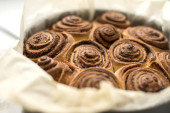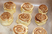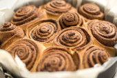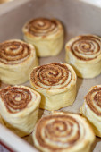 Pyszne okrągłe bułki cynamonowe na blasze po piecu. Gotuję bułeczki w domu w piekarniku..