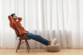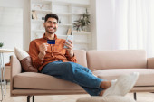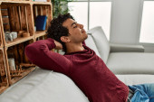 Zdjęcie "Szczęśliwy czarny nastolatek facet relaks na wygodnej kanapie w domu podczas kwarantanny koronawirus" może być wykorzystywane do celów osobistych i komercyjnych zgodnie z warunkami zakupionej licencji Royalty-free. Obraz jest dostępny do pobrania w jakości wysokiej rozdzielczości do 5760x3840.