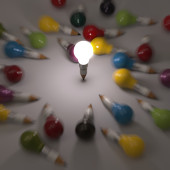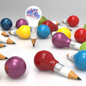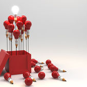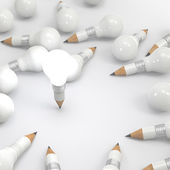 ołówek żarówka 3d i projektowania słowo pomysł jako koncepcja
