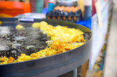Apam balik lub Malezyjski placek orzechowy obrotu. Naleśnik z mąki wypełniony cukrem i polewą kukurydzianą. Gotowane przy użyciu gorącej patelni. Słynne uliczne jedzenie w Malezji.