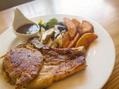 dym tuńczyka pikantne z sałatka fryz na drewnianym stole