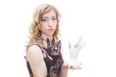Zdjęcie "Młoda kobieta z kostkami na ciemnym tle" może być wykorzystywane do celów osobistych i komercyjnych zgodnie z warunkami zakupionej licencji Royalty-free. Obraz jest dostępny do pobrania w jakości wysokiej rozdzielczości do 5760x3840.