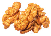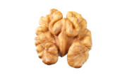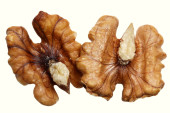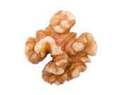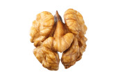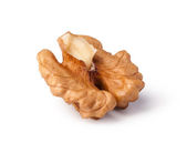 Jeden orzech włoski izolowane zbliżenie bez powłoki jako pakiet projekt kolekcji elementów na białym tle. Makro orzechowe. Jądro orzecha. Pełna głębokość pola