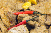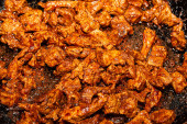 mięso mielone na kawałki smażone na patelni w tle kulinarne gotowanie