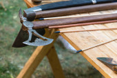 Zdjęcie "siekiera bitewna viking zbliżyć na drewnianym tle" może być wykorzystywane do celów osobistych i komercyjnych zgodnie z warunkami zakupionej licencji Royalty-free. Obraz jest dostępny do pobrania w jakości wysokiej rozdzielczości do 5760x3840.