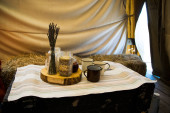 brązowy drewniany kosz duże wiklinowe tradycyjne stojaki na ladzie