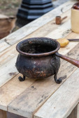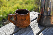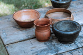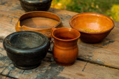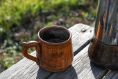 piwo gliny okrągły kubek stoi na stole na tle dzbanka