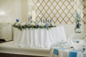 Zdjęcie "dekoracja uroczystej kolacji z kwiatami lilii i tulipanów na stole weselnym we wnętrzu restauracji. Ozdobiony stół do świętowania w fioletowych odcieniach." może być wykorzystywane do celów osobistych i komercyjnych zgodnie z warunkami zakupionej licencji Royalty-free. Obraz jest dostępny do pobrania w jakości wysokiej rozdzielczości do 5760x3840.