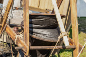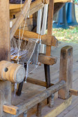 vintage mechanizm tkacki z rozciągniętymi nitkami zbliżenie