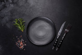 świeże czarne i zielone oliwki i oliwa z oliwek na konkretnym tle. Widok z góry z miejsca na tekst