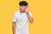 młody arabski przystojny mężczyzna w luźnych ubrań i okularów patrząc na bok, relaks profil pozować z naturalną twarzą i pewnie uśmiech.