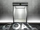 nie można. nowoczesne windy z czerwona strzałka w dół