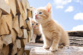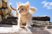 Zdjęcie "Dwa urocze czerwone kociaki przeciwko błękitnemu niebu. Słodkie zwierzaki. Pocztówka, kalendarz, okładka." może być wykorzystywane do celów osobistych i komercyjnych zgodnie z warunkami zakupionej licencji Royalty-free. Obraz jest dostępny do pobrania w jakości wysokiej rozdzielczości do 5760x3840.