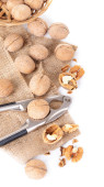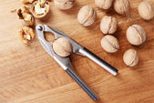 Dziadek do orzechów z orzechów włoskich na drewnianym tle