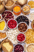 Zdjęcie "Różne rodzaje ziaren fasoli i zbóż. Zestaw niezbędnych źródeł białka dla zdrowego stylu życia. Stary drewniany stół" może być wykorzystywane do celów osobistych i komercyjnych zgodnie z warunkami zakupionej licencji Royalty-free. Obraz jest dostępny do pobrania w jakości wysokiej rozdzielczości do 5760x3840.