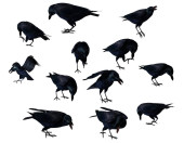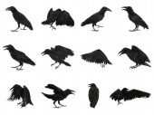 Kolaż z czarnymi krukami na białym tle