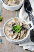Mięso duszone ze szpinakiem i krem