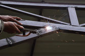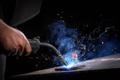 iskry spawalnicze i spawalnicze, koncepcja przemysłu budowlanego i metalurgicznego, spawanie metali iskrami, koncepcja robotnika lub dzień pracy