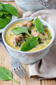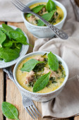 Zdjęcie "Mięso duszone ze szpinakiem i krem" może być wykorzystywane do celów osobistych i komercyjnych zgodnie z warunkami zakupionej licencji Royalty-free. Obraz jest dostępny do pobrania w jakości wysokiej rozdzielczości do 5760x3840.