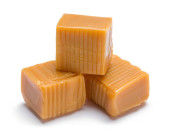 Toffee lub cukierki karmelowe słodycze izolowane na białym tle.
